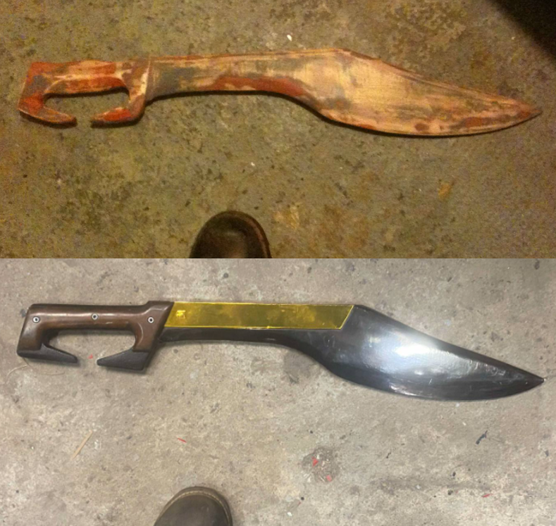 A:My favourite piece of my Mandalorian Costume is my beskad. I still have my original beskad that I made way way back in the day when I was I think 14 years old. Ive refinished it 2 dozen times mind you, but its still the same piece of 3/4″ plywood.