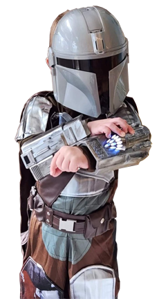 4) Photograph of child wearing their mandalorian costume (a mask or helmet, at minimum)